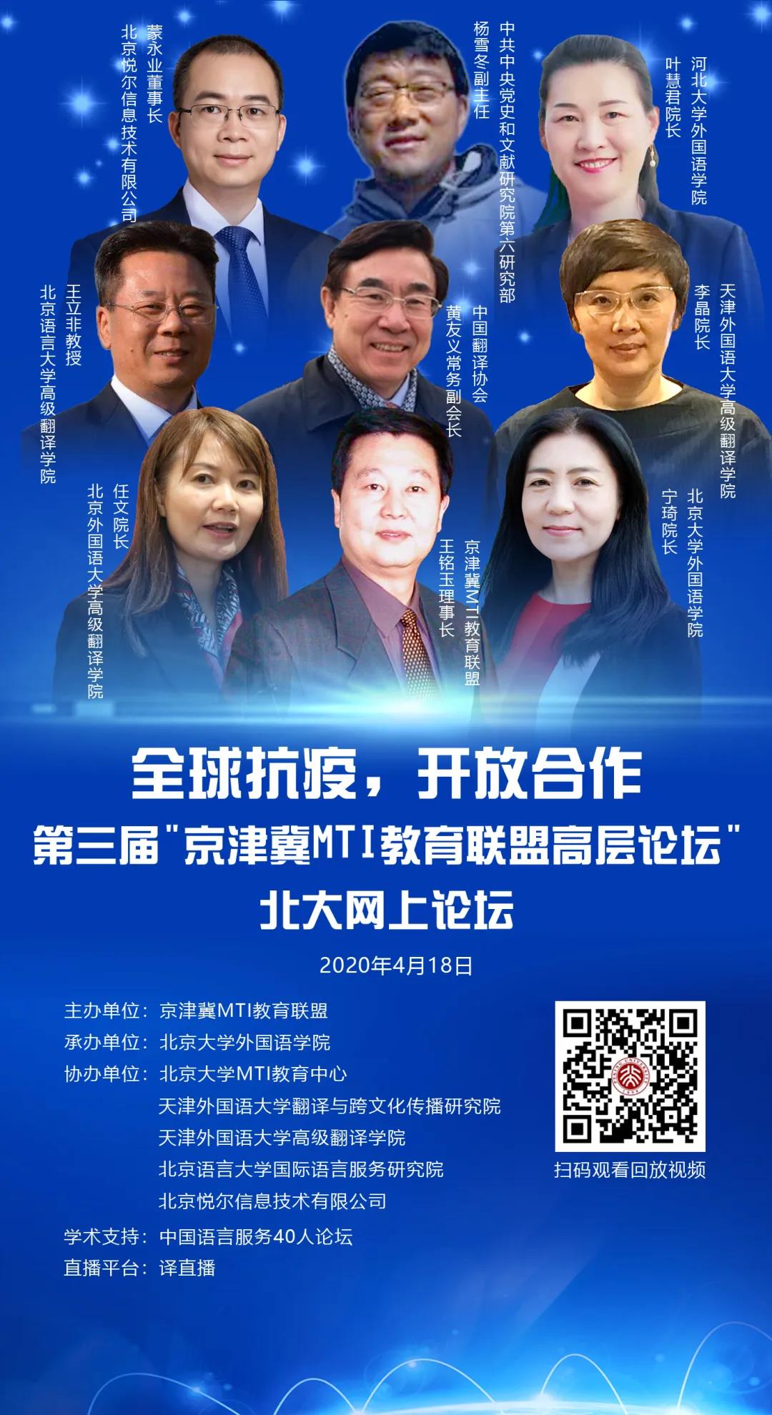 全球抗疫 开放合作——“第三届京津冀MTI教育联盟高层论坛”北京大学网上论坛