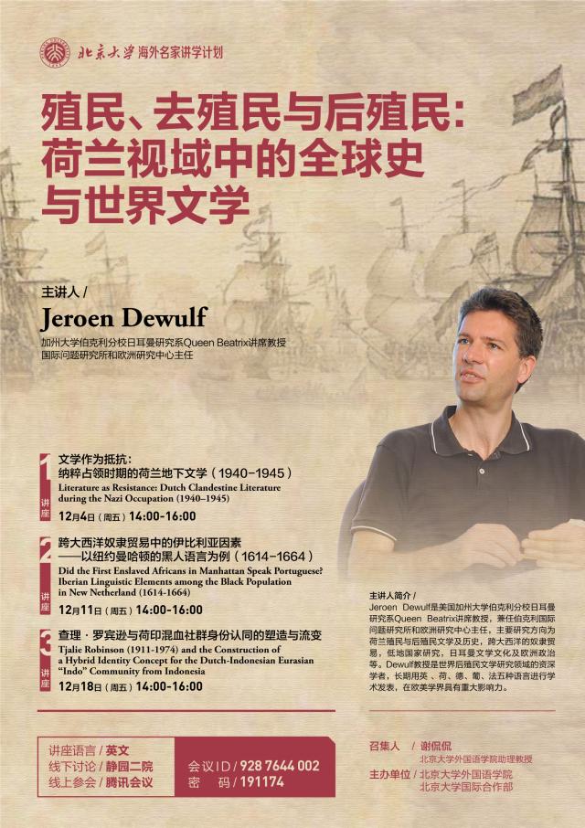 北京大学海外名家讲学计划:殖民、去殖民与后殖民:荷兰视域中的全球史与世界文学