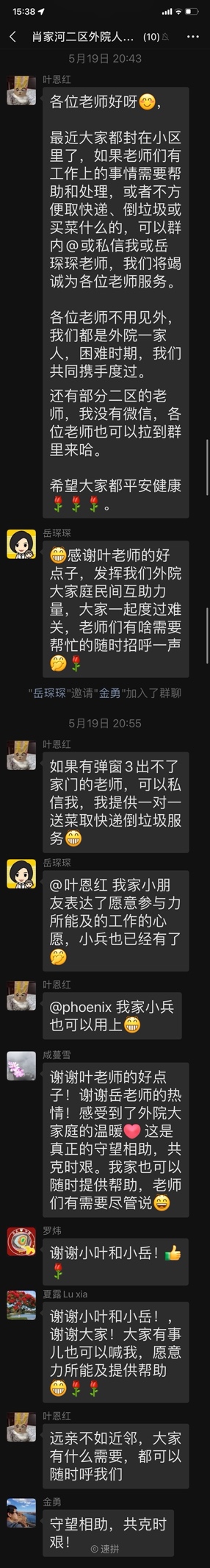 疫情无情,人有情。在疫情面前,外院人互帮互助,传递温情,积极乐观的面对困难。邻里互助的点点滴滴让这场“战疫”始终流淌着暖人的温情。紧闭的房门阻止了大家出行,但不能阻挡大家相互牵挂的浓浓情感。