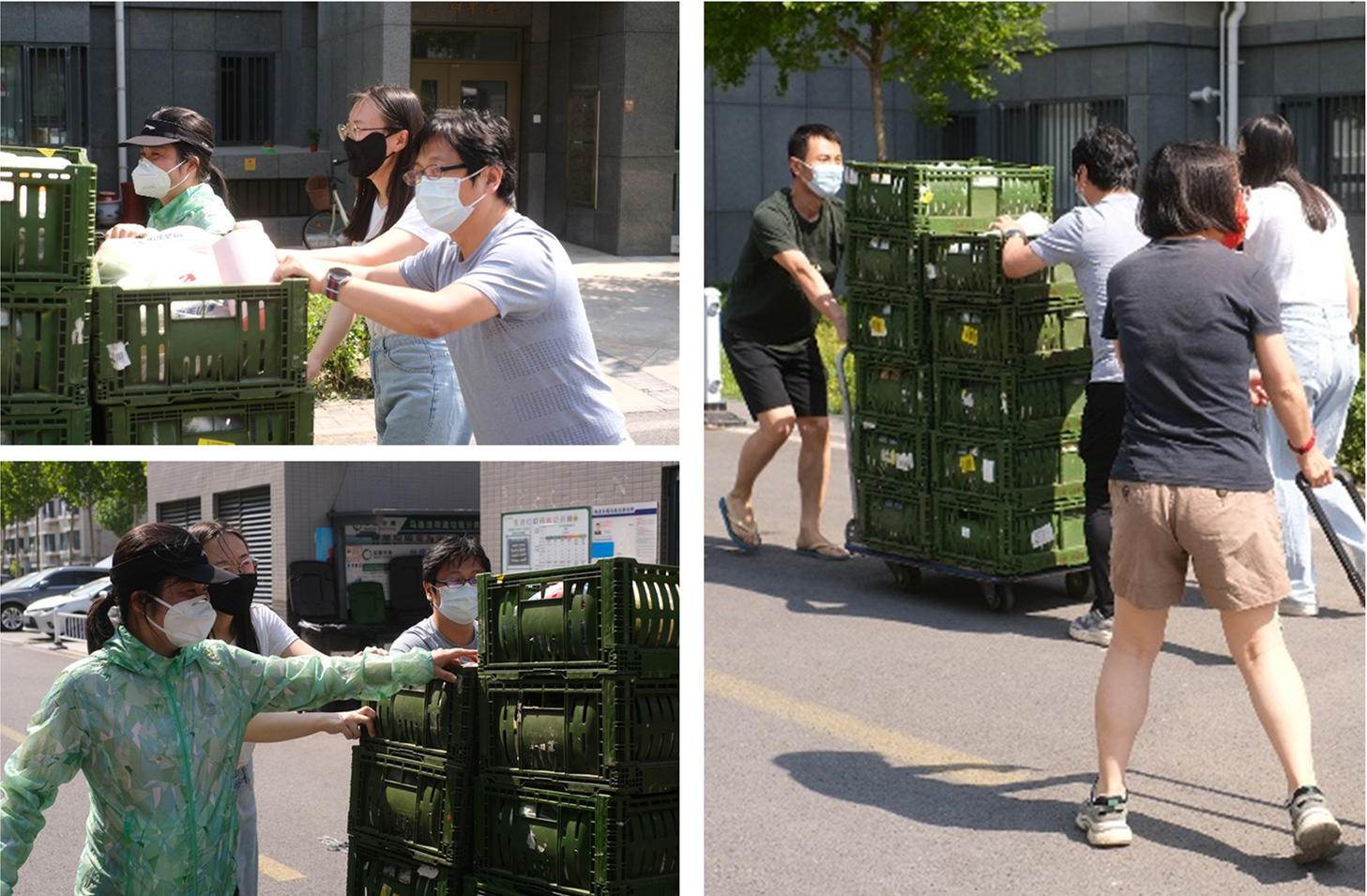 5月23日,海淀区为封、管控小区配发蔬菜包,为减少聚集,并及时将蔬菜包送至老师们手中,住在二区的金勇、岳琛琛、叶恩红和宋扬老师顶着烈日,积极参加了蔬菜包送家的爱心志愿服务。