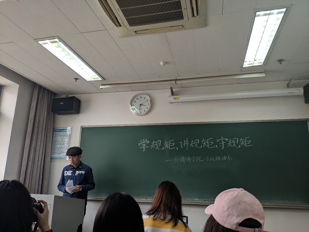 乐鱼官方网站,乐鱼leyu(中国)2018级俄语专业本科生举办 “学规矩、讲规矩、守规矩”主题班会